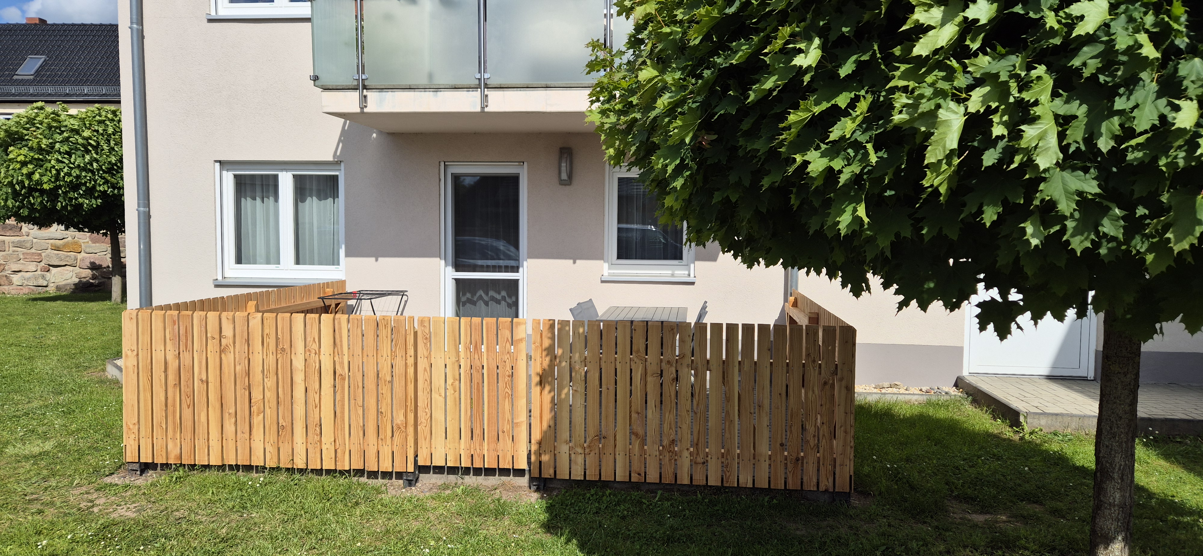 Die Ferienwohnung befindet sich in einem ruhigen Mehrfamilienhaus inmitten von Laasdorf, unweit von Jena.