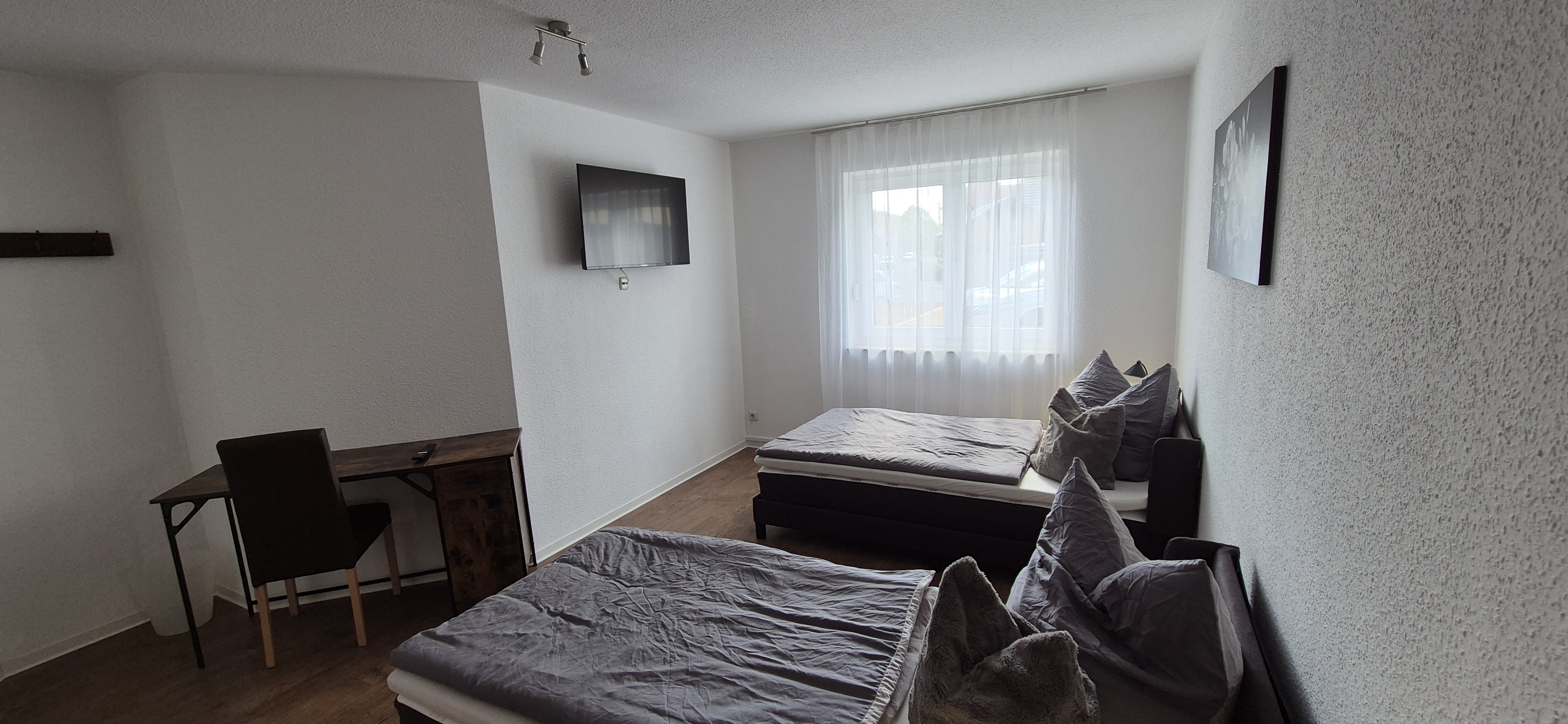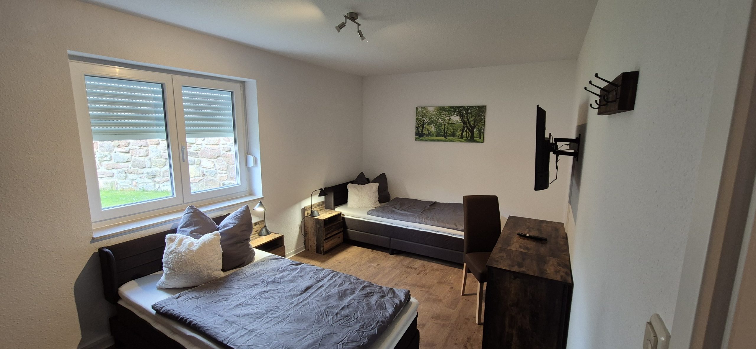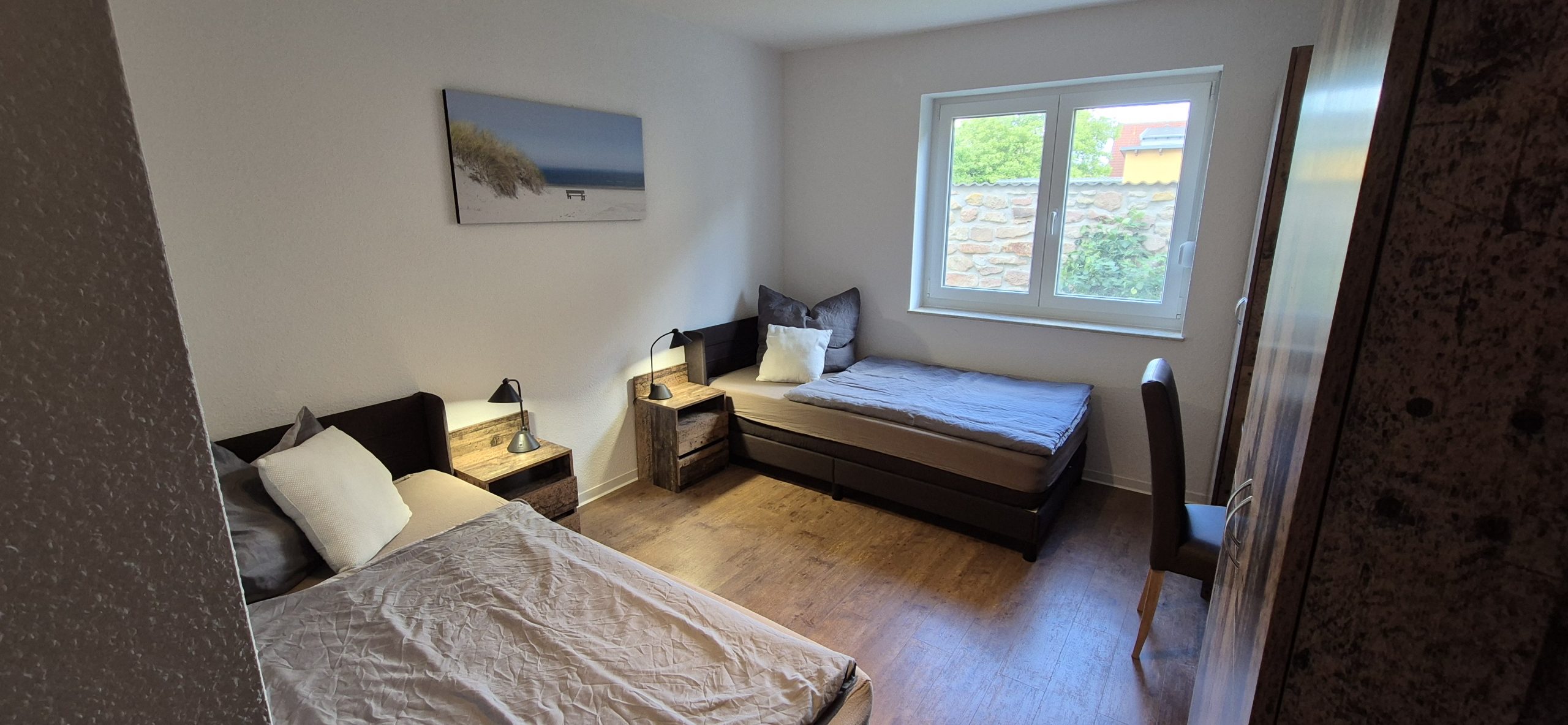 In der Ferienwohnung gibt es 3 separate Doppelzimmer, eine Gemeinschaftsküche
